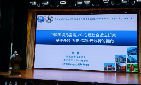 会议采取大会主旨报告、专题论坛和分组报告等多种形式举行。在大会主旨报告环节,熊猛教授作了题为《中国困境儿童青少年心理社会适应研究:基于外显-内隐-追踪-元分析的视角》的大会报告,全面探讨了中国困境儿童青少年的心理社会适应状况,通过外显行为、内隐心理、追踪研究及元分析的综合视角,揭示其心理社会适应的影响因素及作用机制,不仅提供了关于困境儿童青少年心理社会适应的实证数据,还为其心理健康教育和干预措施的制定提供了科学依据。