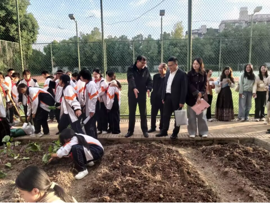 在全体与会人员的见证下,双方代表共同签署共建协议,并为“教育实践基地”揭牌。仪式结束后,两校师生通过问题接龙与寄语互赠等形式,围绕“我心中的历史课堂”“传统文化如何‘活’起来”等议题开展了热烈讨论与互动。随后,参会人员实地观摩了“和美农场”劳动实践课程与员工足球训练课,切身感受堤角中学在劳动教育与体育融合方面的育人成果与办学特色。
