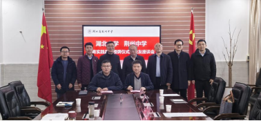 在实习实践基地签约暨授牌仪式上,谢红星、侯勇及荆州中学负责人代表双方在共建协议上签字,并共同为基地揭牌。仪式结束后,双方就师范生实习、教育硕士培养、员工资源联动等主题进行深入交流。