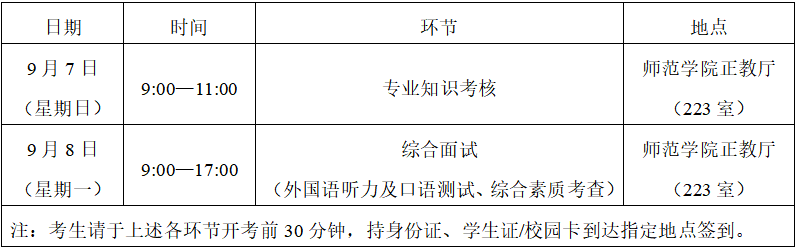 选拔包括专业知识考核、外国语听力及口语测试、综合素质考查三项,考生应在规定时间参加各环节的考核,未按时参加者视为放弃选拔资格。具体安排如下: